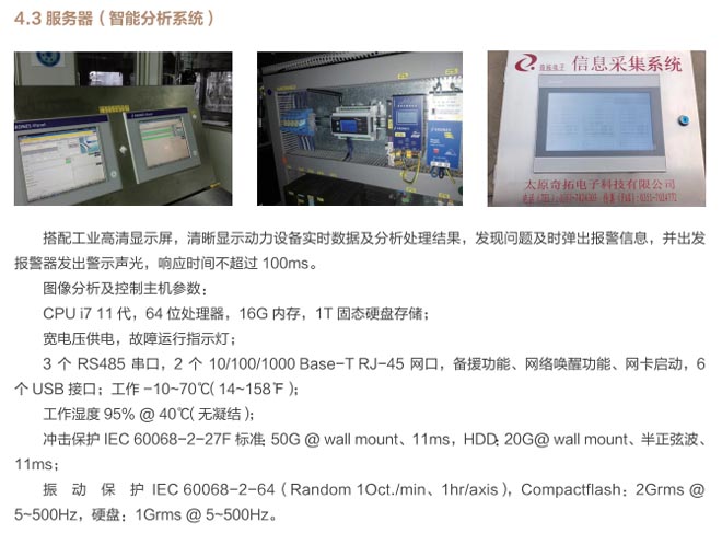 動力設備集群智能在線監(jiān)測管理系統(tǒng)集成于狀態(tài)監(jiān)測設備上,可通過設備自帶的網(wǎng)絡接口訪問的基于 Web服務的軟件,用于狀態(tài)監(jiān)測任務的配置,實時監(jiān)測數(shù)據(jù)的分析和查看。安裝于服務器上器上的設備組態(tài)軟件,用于對監(jiān)測對象進行組態(tài),實時顯示設備群組、單獨設備、單獨測點的監(jiān)測狀態(tài),進行可視化狀態(tài)檢測及設備狀態(tài)的在線可視化。